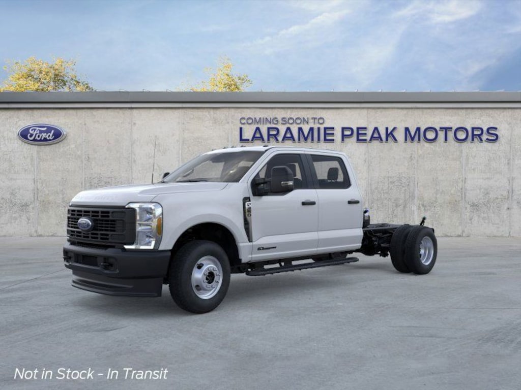 F-350 SuperDuty XL DRW, 4D Crew Cab/Chassis, 10-Speed Automatic, 4WD, Medium Dark Slate w/Cloth 40/20/40 Split Bench Seat, 17" Argent Painted Steel Wheels, 4-Wheel Disc Brakes, 410 Amp Dual Alternators, ABS brakes, Air Conditioning, Brake assist, Compass, Delay-off headlights, Dual rear wheels, Ford Connectivity Package (1-Year Included), Front reading lights, Fully automatic headlights, GVWR: 14,000 Lb Payload Package, Heated door mirrors, Illuminated entry, Internet access capable: 5G Modem - Ford Connectivity Package, Limited Slip with 4.10 Axle Ratio, Order Code 640A, Outside temperature display, Overhead console, Panic alarm, Passenger vanity mirror, Power door mirrors, Power steering, Power windows, Pro Power Onboard - 400W Outlet, Radio: AM/FM Stereo with MP3 Player, Rear reading lights, Remote keyless entry, Security system, Snow Plow Prep Package, Speed control, Split folding rear seat, Steering wheel mounted audio controls, SYNC 4, Tachometer, Telescoping steering wheel, Tilt steering wheel, Traction control, Trip computer, Turn signal indicator mirrors, Variably intermittent wipers.