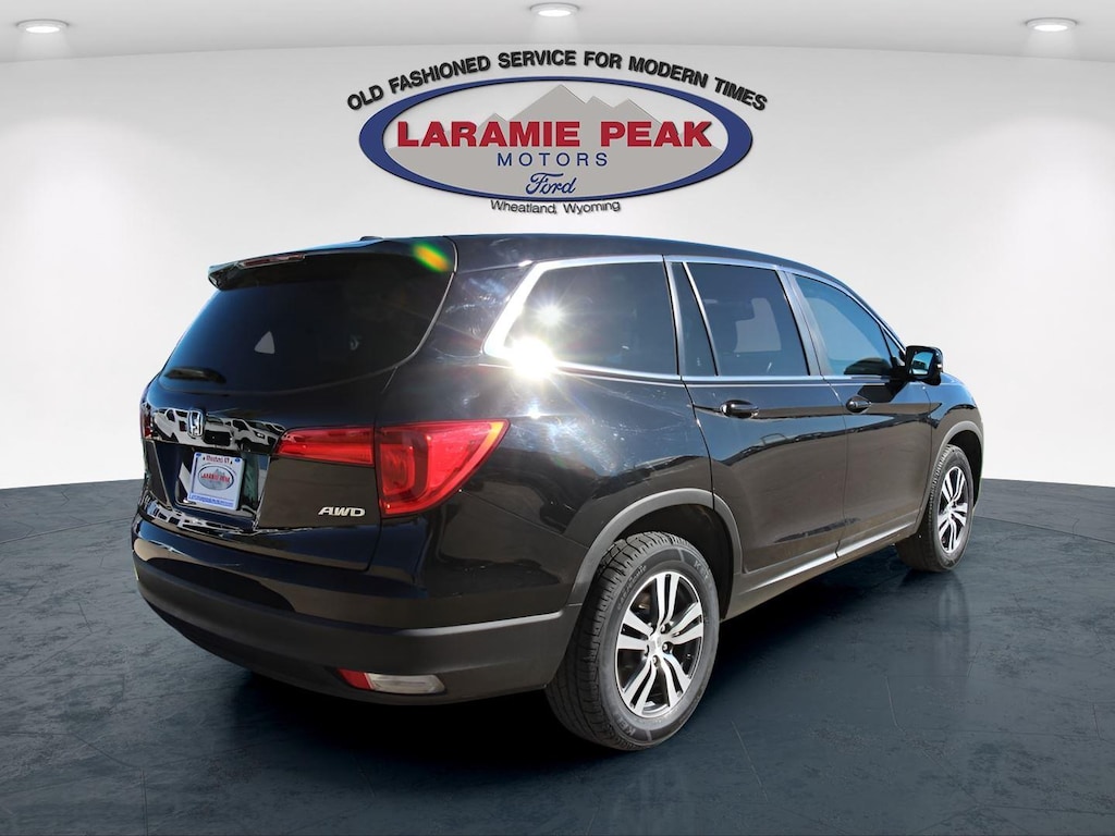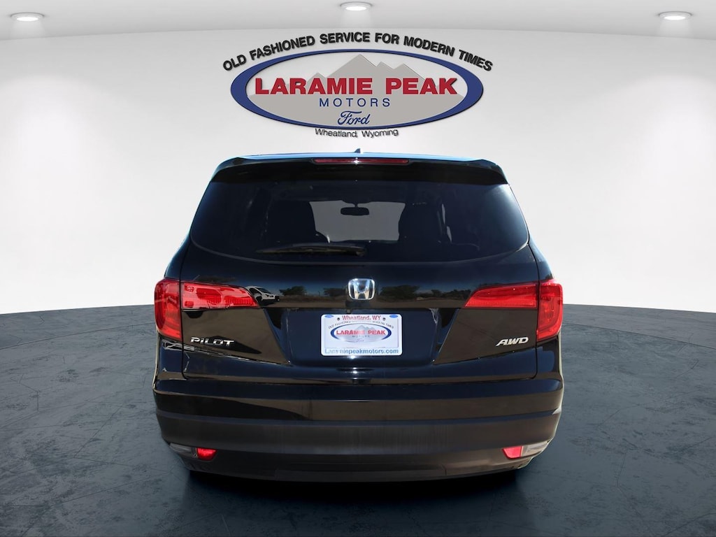 Experience the BEST customer service a Dealership can offer by looking at this 2017 Honda Pilot EX-L in Crystal Black Pearl in Wheatland, WY with 100117 Miles - 5FNYF6H73HB033349. Serving Southeast Wyoming-- Casper, Cheyenne, Laramie, Douglas, and Torrington. This vehicle is available today at Laramie Peak Motors. Call 3073222355 to speak with one of our Sales Professionals NOW!2017 Honda Pilot EX-L w/Navigation 4D Sport Utility, 3.5L V6 24V SOHC i-VTEC, 6-Speed Automatic, AWD, Black w/Leather-Trimmed Seats, 18 Alloy Wheels, 3rd row seats: split-bench, 4-Wheel Disc Brakes, 4.25 Axle Ratio, 7 Speakers, ABS brakes, Air Conditioning, Alloy wheels, AM/FM radio: SiriusXM, Apple CarPlay/Android Auto, Auto-dimming Rear-View mirror, Automatic temperature control, Brake assist, Bumpers: body-color, Compass, Delay-off headlights, Driver door bin, Driver vanity mirror, Electronic Stability Control, Exterior Parking Camera Rear, Four wheel independent suspension, Front Bucket Seats, Front Center Armrest, Front dual zone A/C, Front fog lights, Front reading lights, Fully automatic headlights, Garage door transmitter: HomeLink, Heated door mirrors, Heated Front Bucket Seats, Heated front seats, Illuminated entry, Leather Shift Knob, Leather-Trimmed Seats, Navigation System, Outside temperature display, Overhead console, Panic alarm, Passenger door bin, Passenger vanity mirror, Power door mirrors, Power driver seat, Power Liftgate, Power moonroof, Power passenger seat, Power steering, Power windows, Radio data system, Radio: AM/FM Audio System, Rear air conditioning, Rear reading lights, Rear seat center armrest, Rear window defroster, Rear window wiper, Remote keyless entry, Security system, SiriusXM Radio, Speed control, Speed-sensing steering, Speed-Sensitive Wipers, Split folding rear seat, Spoiler, Steering wheel mounted audio controls, Tachometer, Telescoping steering wheel, Tilt steering wheel, Traction control, Trip computer, Variably intermittent wipers. Clean CARFAX.Odometer is 8017 miles below market average! 18/26 City/Highway MPGSales Tax, Title, License Fee, Registration Fee, Dealer Documentation Fee $349, Finance Charges, Emission Testing Fees and Compliance Fees are additional to the advertised price.